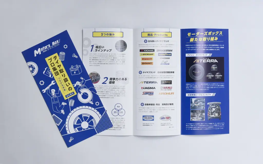 業務内容をわかりやすく、かつ親しみやすく紹介することを意識しました。 表紙にポップで元気なイラストを使用することでユーザーが 手に取りたくなるリーフに仕上げています。