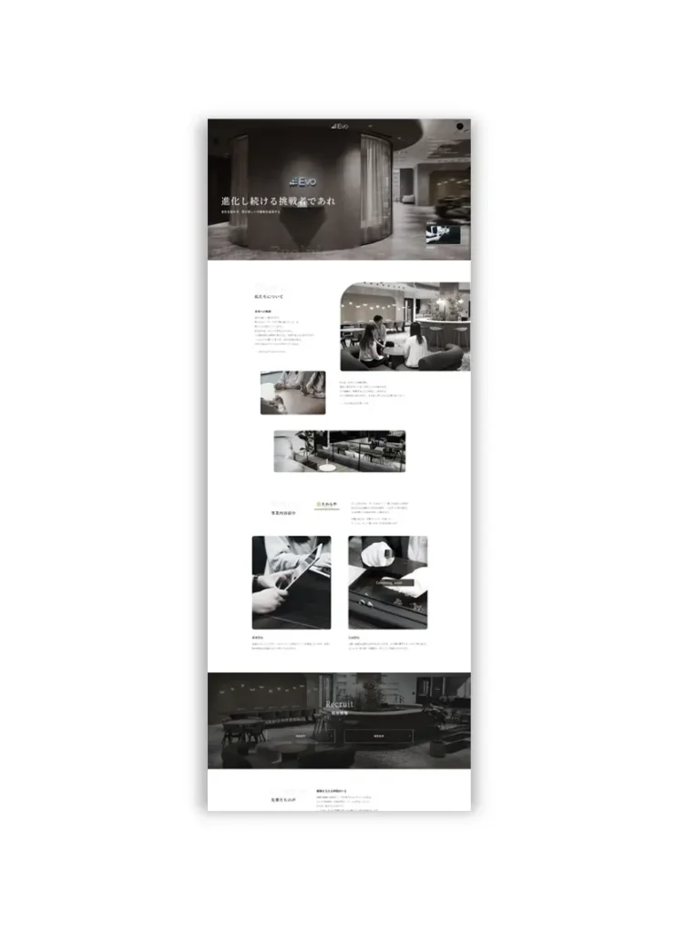 「進化し続ける挑戦者であれ」という力強い企業理念を、ダイナミックかつ洗練されたデザインで視覚化。新宿ファーストタワーに拠点を構える企業のスケール感と、未来へ向かう先進性を表現しました。サイト立ち上げにあたり、情報の明確さとブランドの熱量を両立させ、訪問者に企業の成長性を印象付ける構成としています。